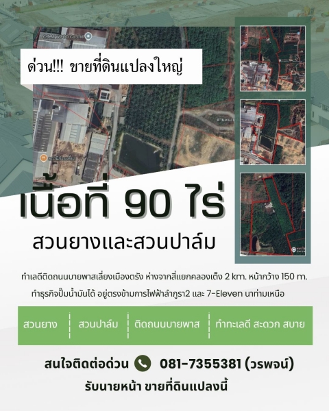 ???? ขนาดที่ดิน: 90 ไร่ (สวนยางพารา + สวนปาล์ม)