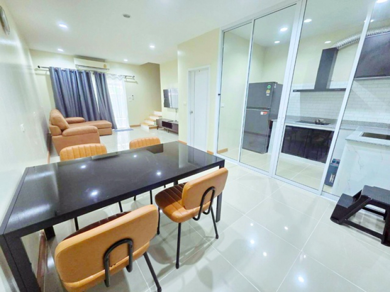near Thanya Park 900 m. newly renovated land Phatthanakan 30-34 3 story townhome 3 bed 3 bath size 20 sq.wa. usable area 240 sq.m. rent 33,998 B-M fully furnished with appliances located in near Kasem Bundit University 1 km. close to market expressway and BTS with easy access to main roads