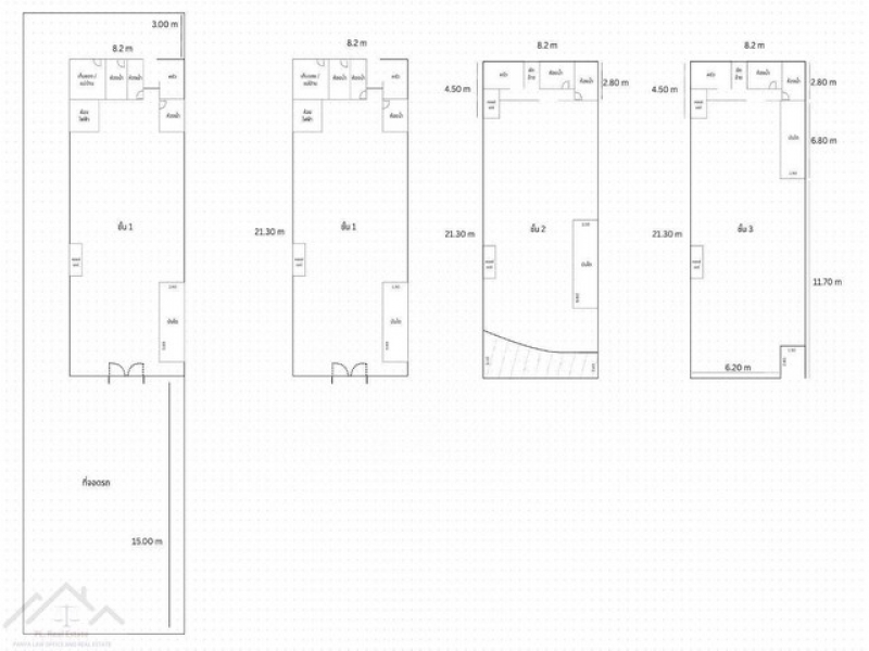 • อาคาร หน้ากว้าง ประมาณ 8 ม. ยาว 21 ม.