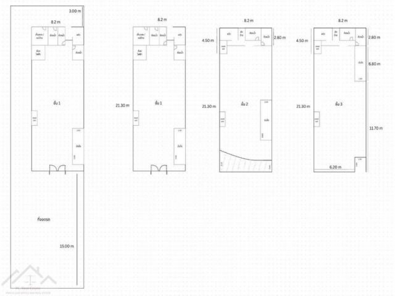 เนื้อที่ 115 ตารางวา / หลัง พื้นที่ใช้สอย 500 ตารางเมตร / หลัง อาคารหน้ากว้างประมาณ 8 เมตร ยาว 21 เมตร
