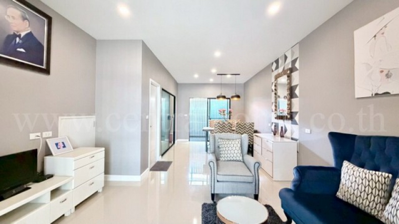 - 3 ห้องนอน, 3 ห้องน้ำ, 1 ห้องรับแขก, 1 ห้องนั่งเล่น, 1 ห้องครัว, 2 ที่จอดรถ